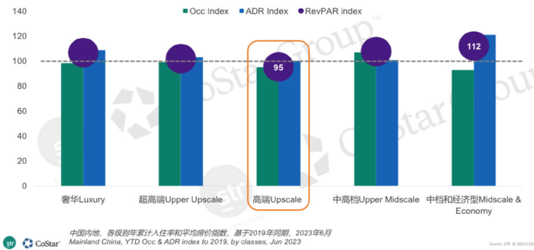 探究上述背离的底层逻辑,可以大致集中在三个层面:从宏观层面看,源于行业面对的诸多不确定性,如宏观经济下行压力,地缘政治博弈日趋激烈,这些因素传导到酒店业,使得行业复苏的节奏和轨迹与以往明显不同;从中观层面看,受房地产因素的影响,酒店行业从股权结构到商业模式都面临着一次大拆解,传统商务需求明显萎缩;从微观层面看,尽管2023年RevPAR数据较2019年还算过得去,但出租率指标总体上较为低迷。大家在2023年初寄予厚望的流量“井喷”只出现于个别地区的个别时间段,总体上看并没有全面显现。